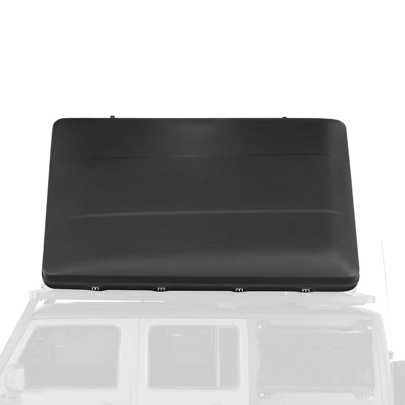 Das Skycamp 2.0 Mini ist wahlweise auch in der Variante „Rocky Black“ erhältlich. Die Hartschale ist mit einer mattschwarzen LineX Beschichtung versehen. Dadurch erhält das Dachzelt einen robusten Look und gibt nicht nur im Offroad-Bereich eine gute Figur ab.