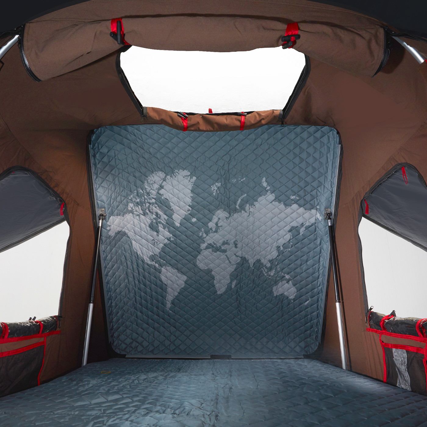 Das dickere Material, die wasserabweisenden Reißverschlüsse und das Tropendach sorgen dafür, dass alles trocken bleibt und auch an windigen Tagen ruhiger Schlaf garantiert ist. Alles, was ein Ganzjahres-Dachzelt braucht.